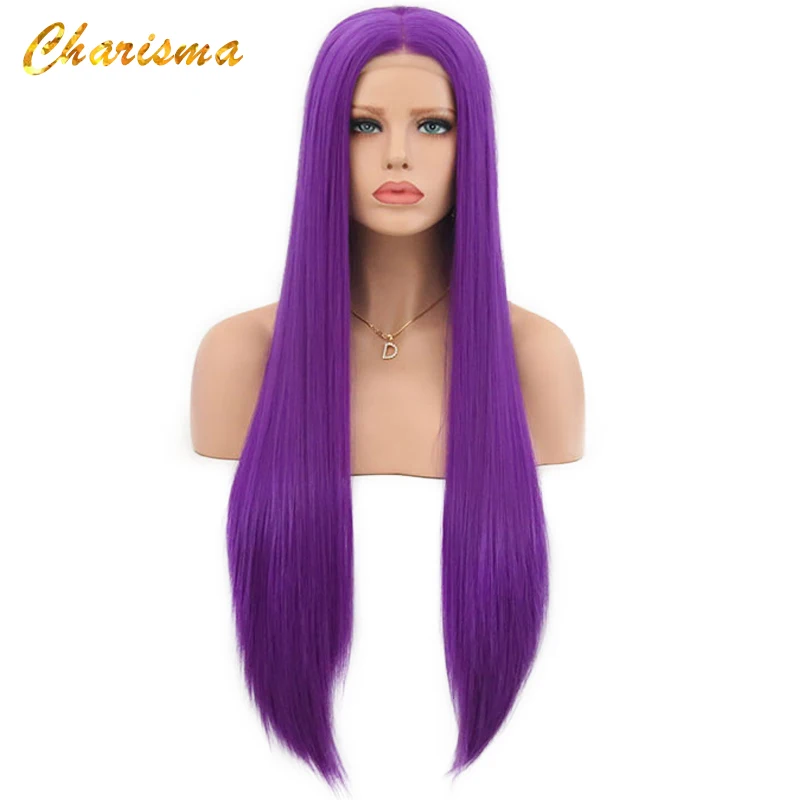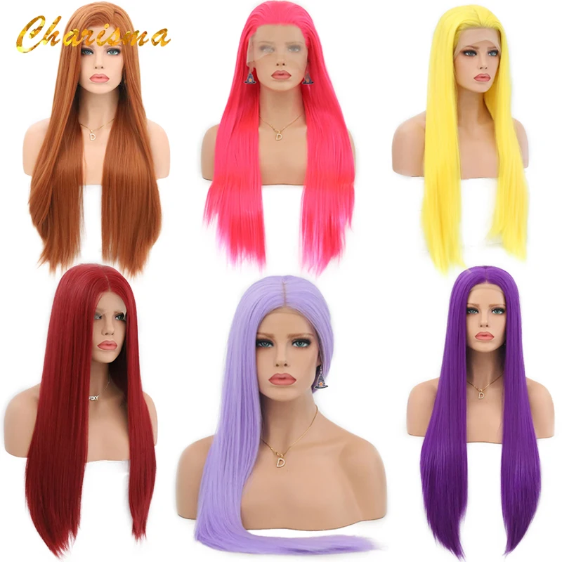 Charisma Long Blonde Cosplay Wig Silky Straight Synthetic Lace Front Wigs for Women 10 Color Pink B