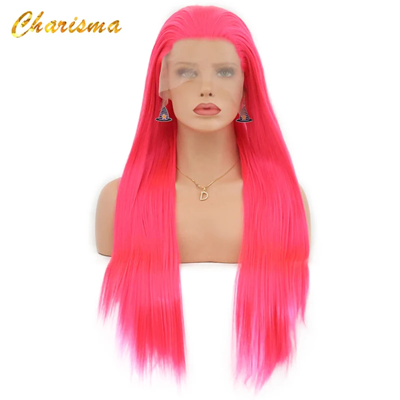 HIGH QUALITY Charisma Long Blonde Cosplay Wig Silky Straight Synthetic Lace Front Wigs for Women 10 Color Pink B