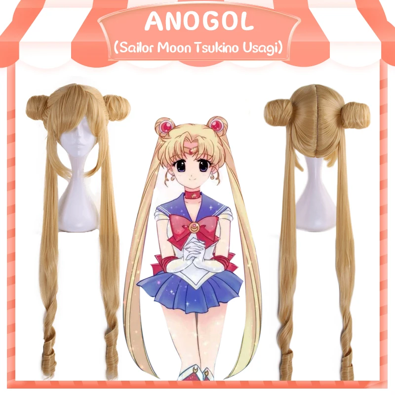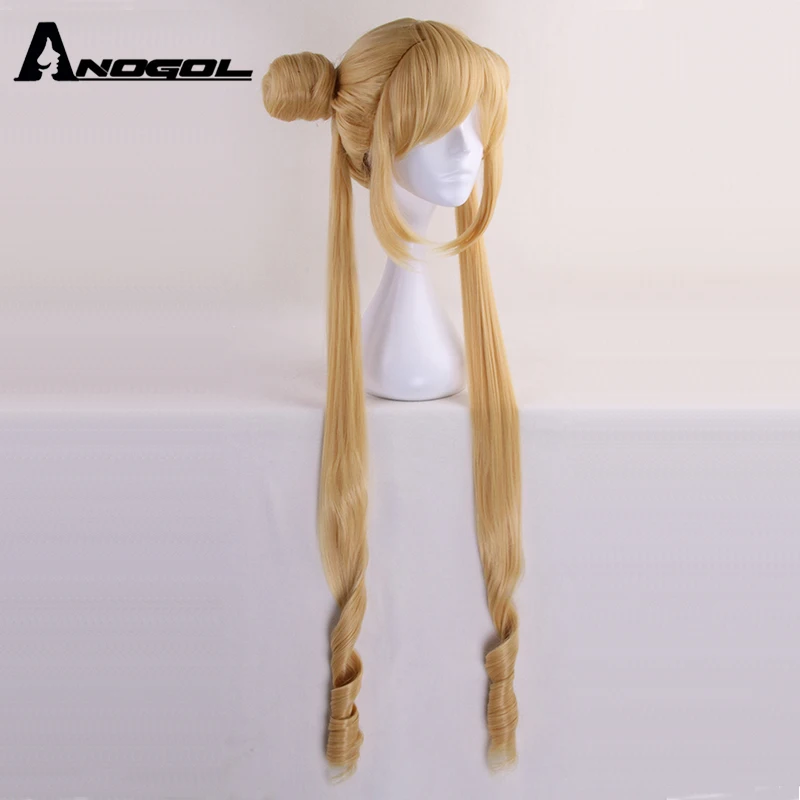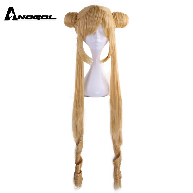 REVIEW TOP SELLER Anogol Brand New Sailor Moon Tsukino Usagi Long Curly Blonde Double Ponytail Synthetic Cosplay Wig