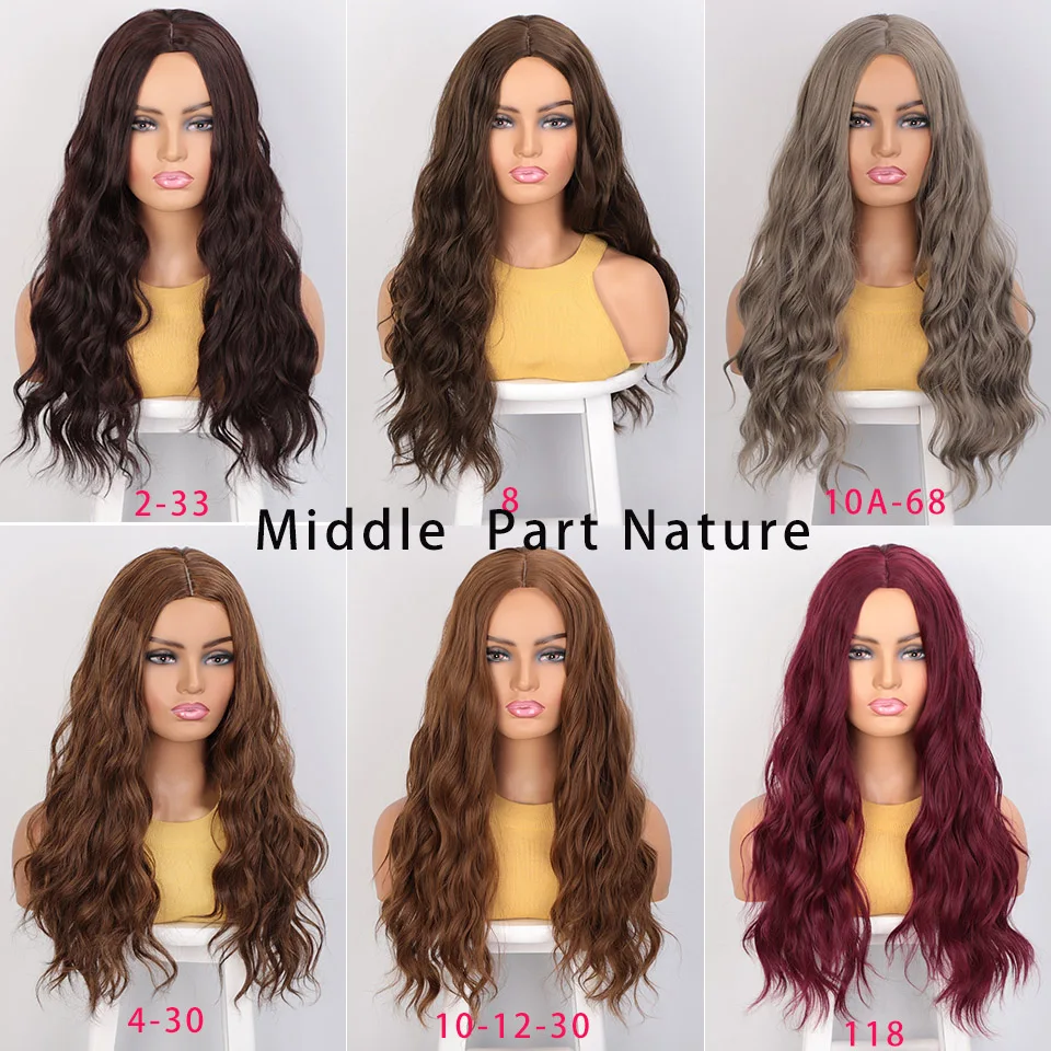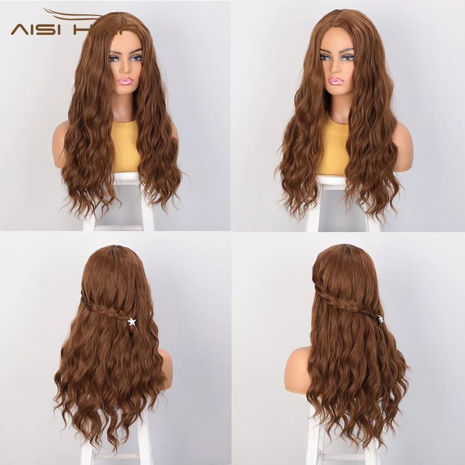 HIGH QUALITY I's a wig Water Wave Synthetic Wigs Long Wigs for Women Brown Cosplay Wigs Middle Part Nature Heat