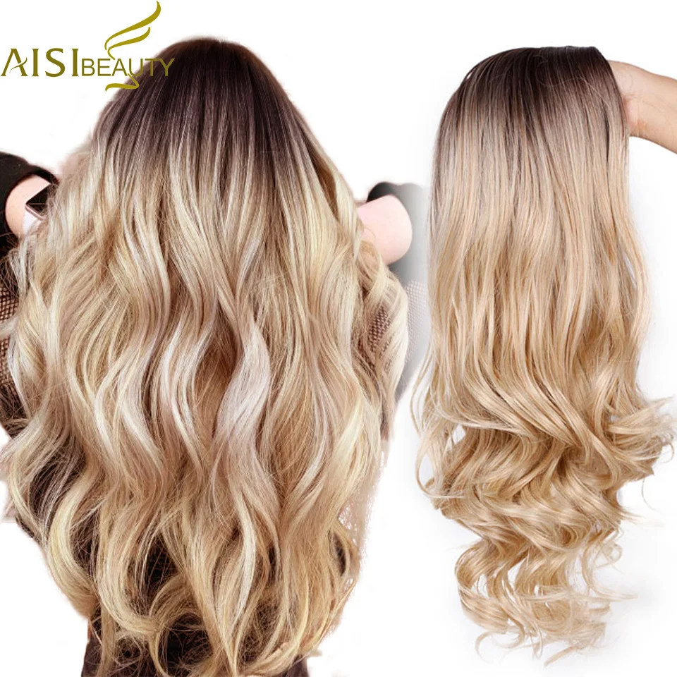 AISI BEAUTY Ombre Long Blonde Brown Wavy Wigs For Women Synthetic Black Gray Red Female Daily Party