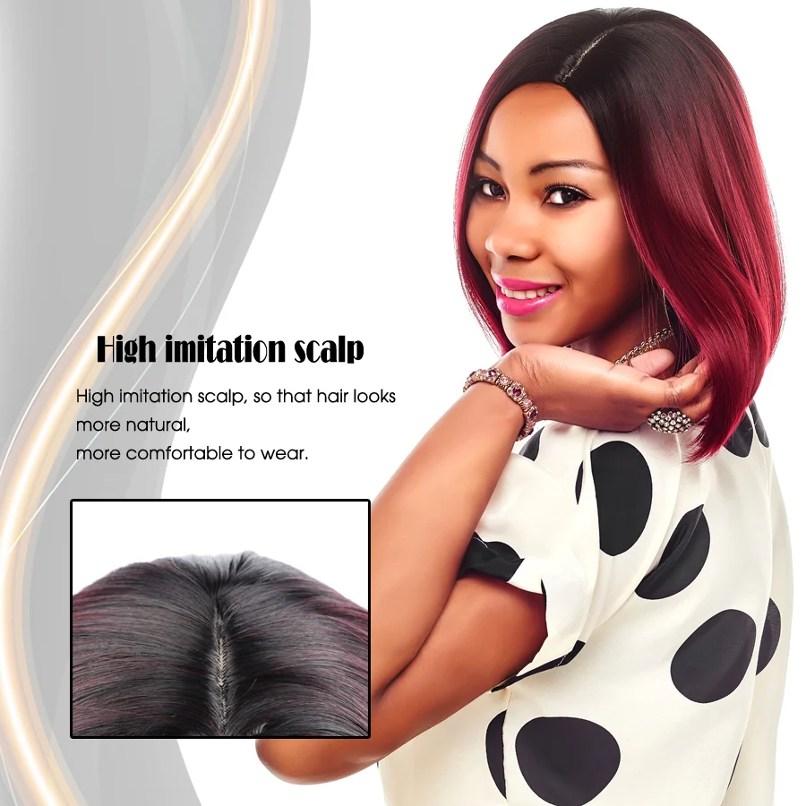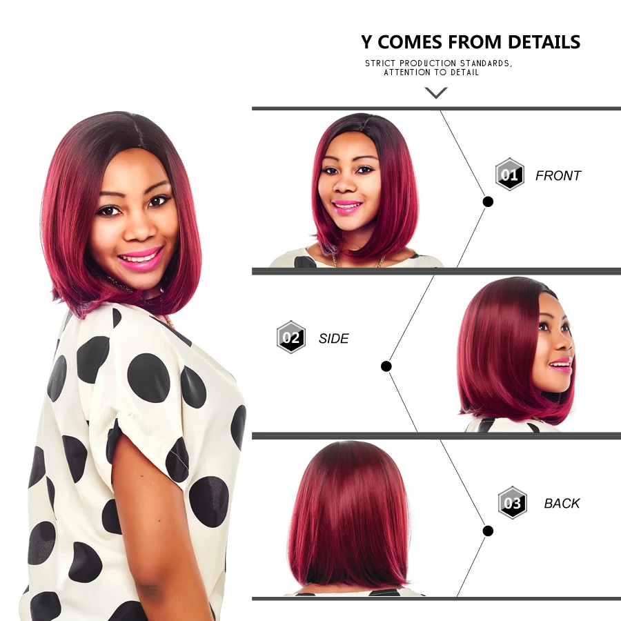 AliLeader Product 14Inch Dark Roots Ombre Burgundy Brown Purple Wig Synthetic Heat Resistant Fiber