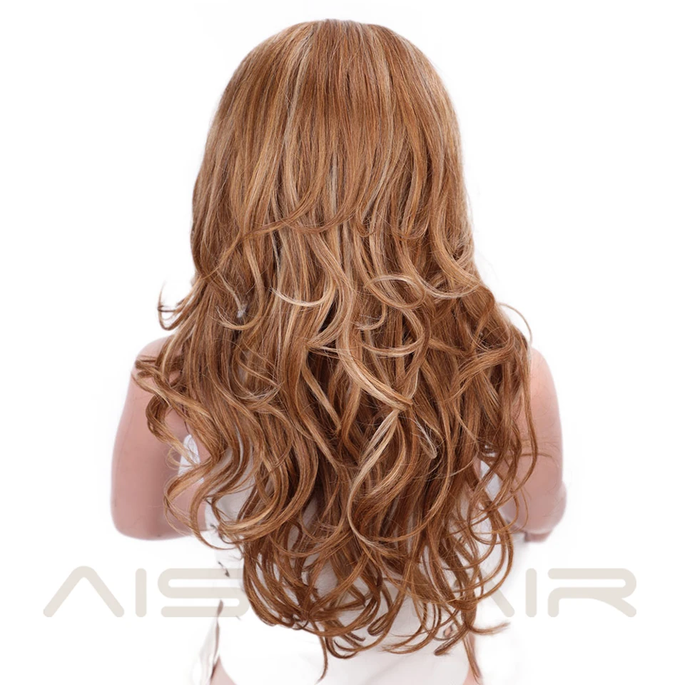 HOT SALE AISI HAIR Long Wavy Natural Hair Wig Mixed Dark Brown Synthetic Wigs For Black Women Side Part Blon