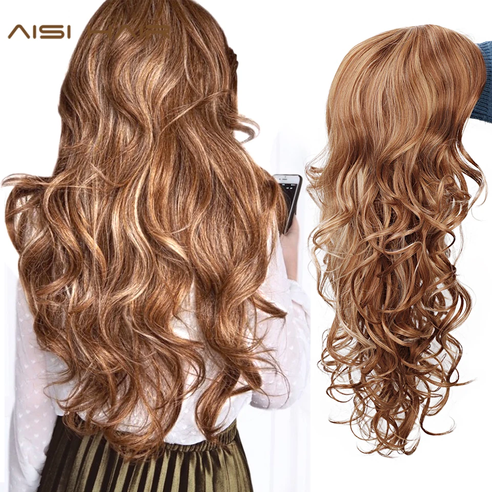 AISI HAIR Long Wavy Natural Hair Wig Mixed Dark Brown Synthetic Wigs For Black Women Side Part Blon