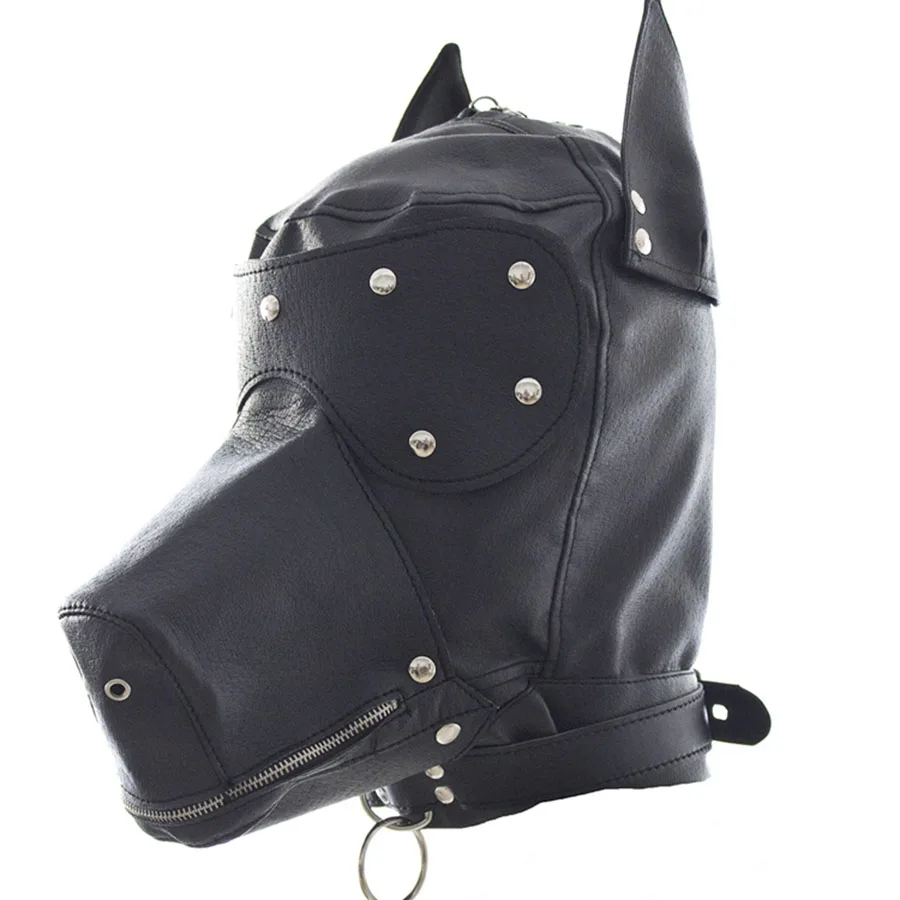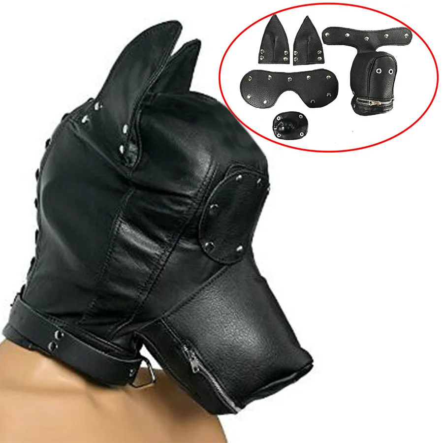 Leather Face Muzzle HoodDog Mask With Blindfold and Detachable GagBdsm Bondage Masks Gimp Accessori