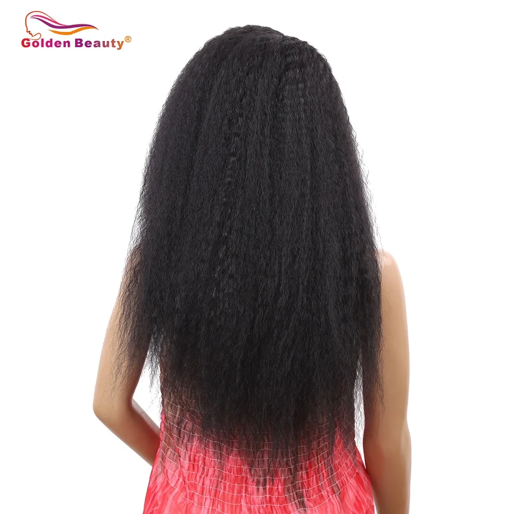 Golden Beauty 24inch Long Kinky Straight Wig Synthetic Lace Front Wig Fluffy Hair Wigs for Black Wo