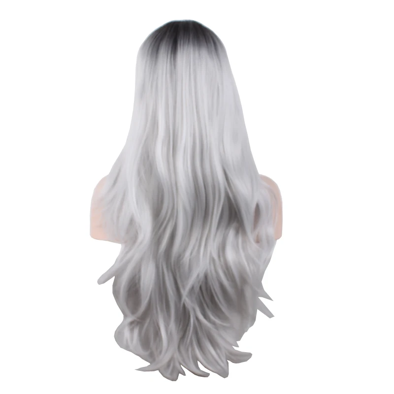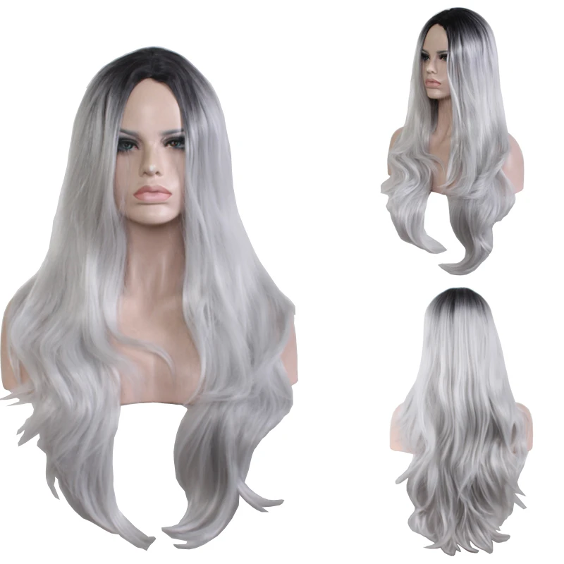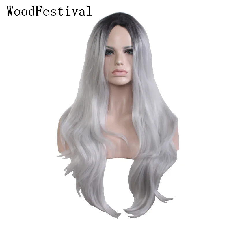 ORIGINAL WoodFestival Black Grey Synthetic Wig Heat Resistant Wigs for Women Wavy Long Hair Cosplay
