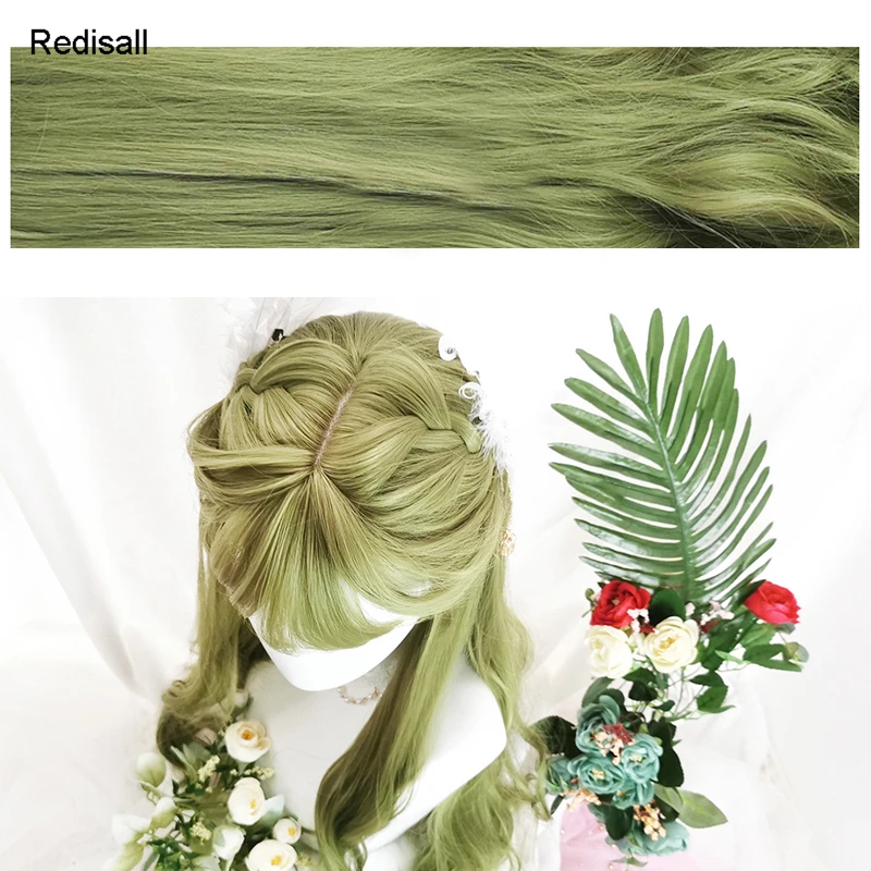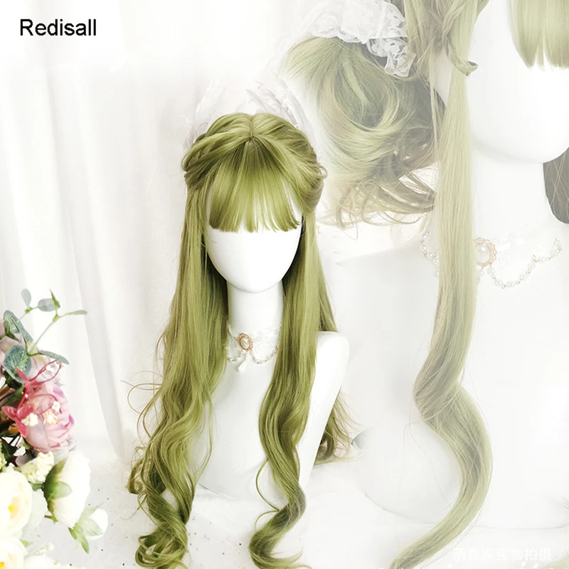 HOT SALE Special Green Harajuku Lolita Wig Curly Sweet Long Body Wave Cute Synthetic Hair Fringe Bangs Adult