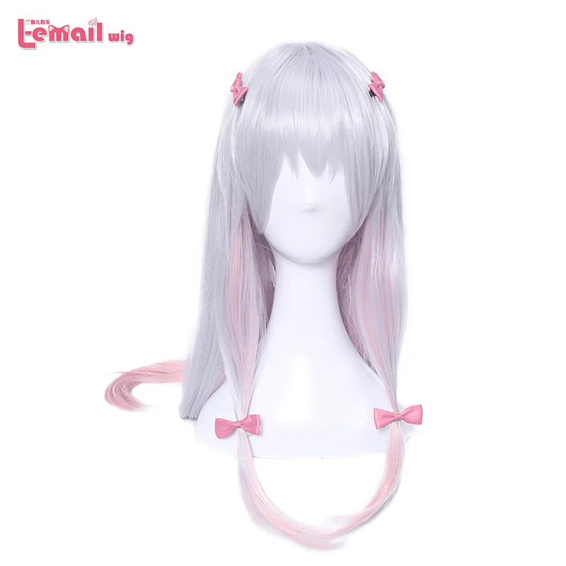L-email wig Eromanga Sensei Sagiri Izumi Cosplay Wigs 70cm Silver Mixed Pink Heat Resistant Synthet