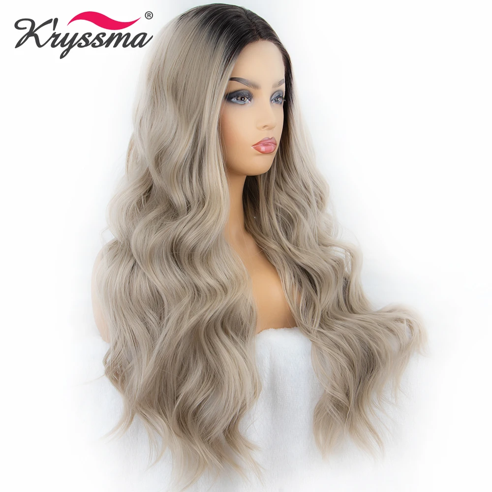 REVIEW TOP SELLER Platinum Blonde Wig Synthetic Lace Front Ombre Wig Dark Roots Long Wavy Wigs for Women Two Tones 22