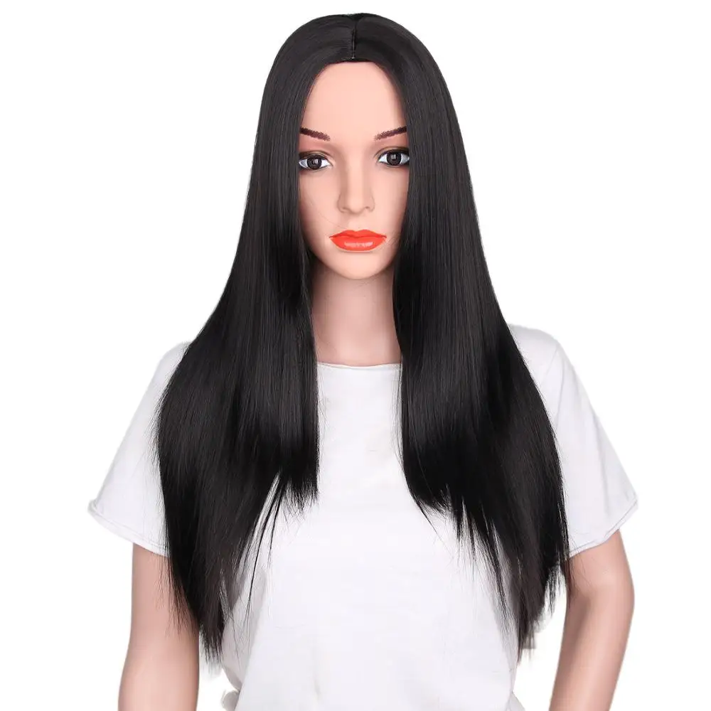 Best Quality Stamped Glorious 26inches Synthetic Wig Straight Long Black Wig MiddlePart Heat Resistant Fiber Hai