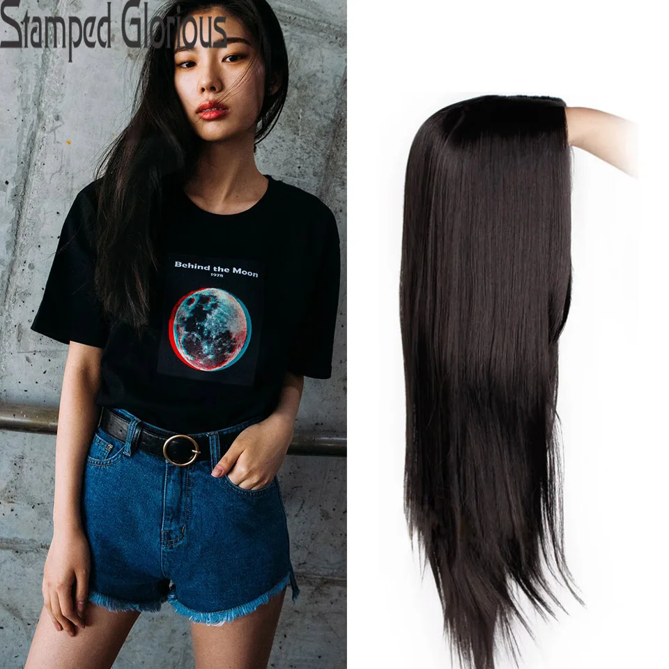 Stamped Glorious 26inches Synthetic Wig Straight Long Black Wig MiddlePart Heat Resistant Fiber Hai