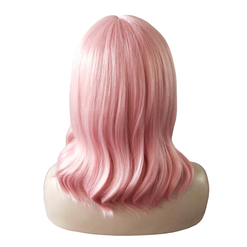 Best Seller WoodFestival Heat Resistant Pink Synthetic Cosplay Wig with bangs Short Wigs for Women