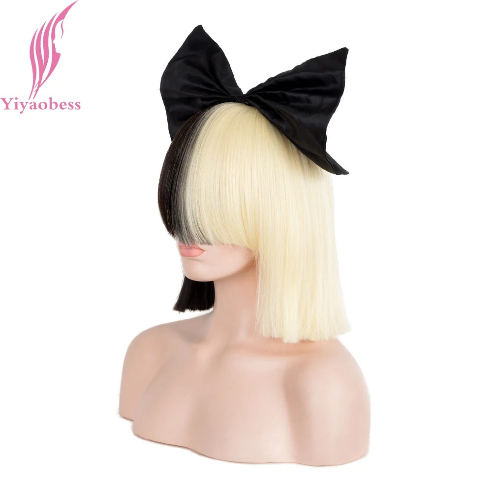 Best Yiyaobess 10inch Synthetic Short Ombre Hair Women Straight SIA Wig Cosplay Mix black light Golden B