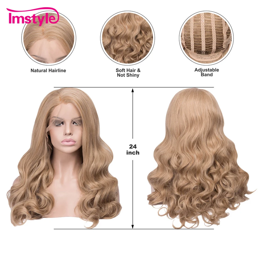 BEST QUALITY Imstyle Honey Blonde Wigs Synthetic Lace Front Wig Wavy Wigs For Women Heat Resistant Fiber Glueles