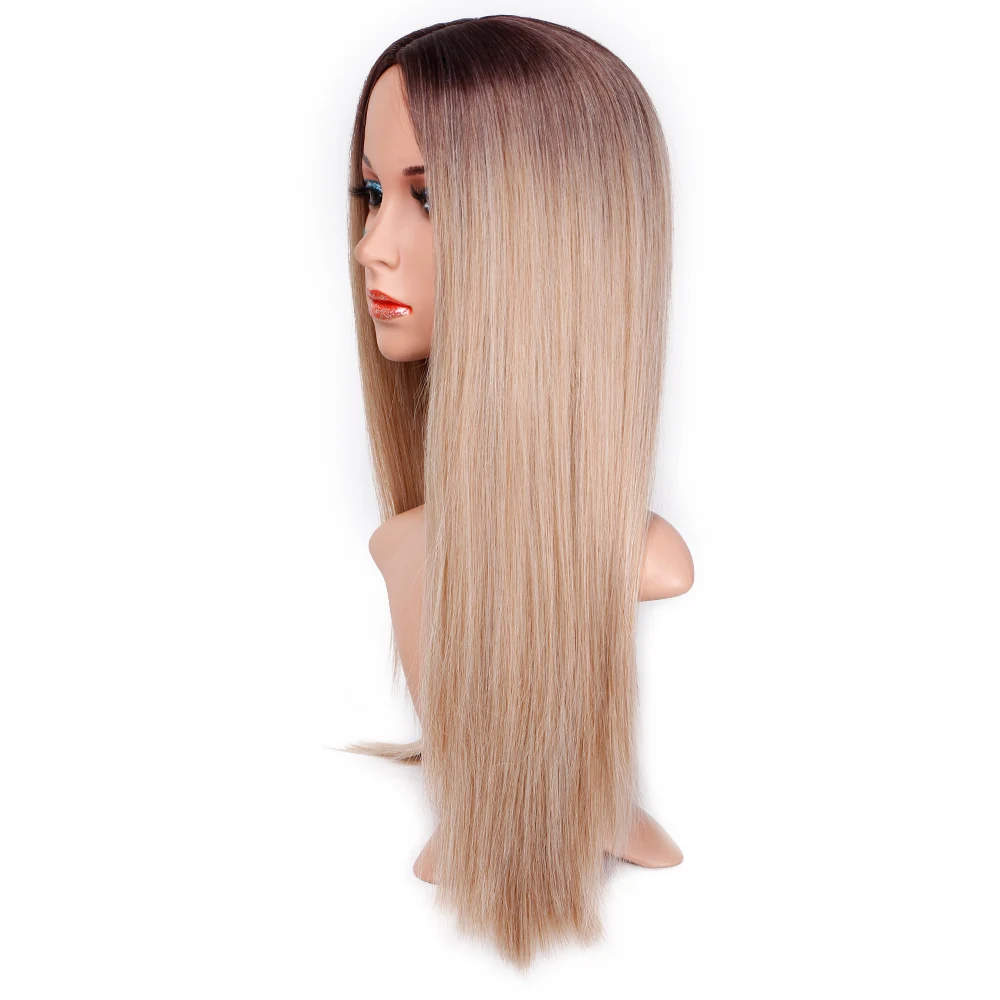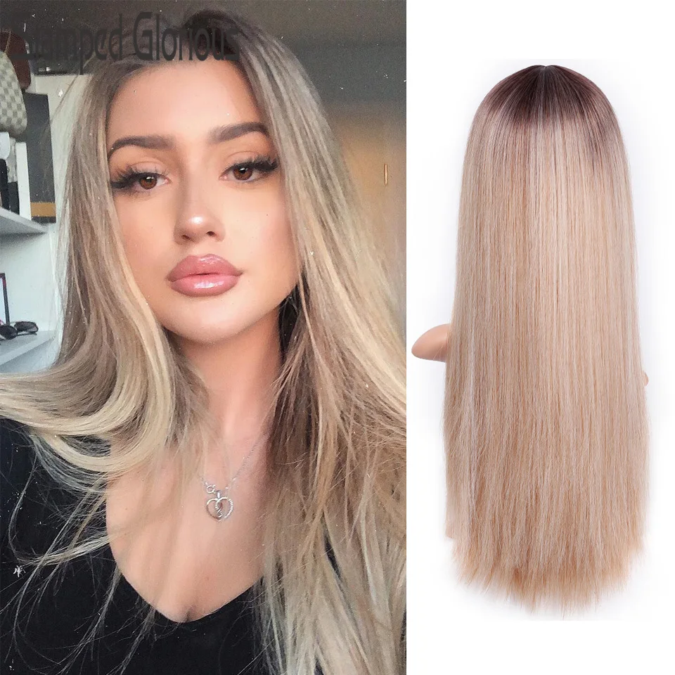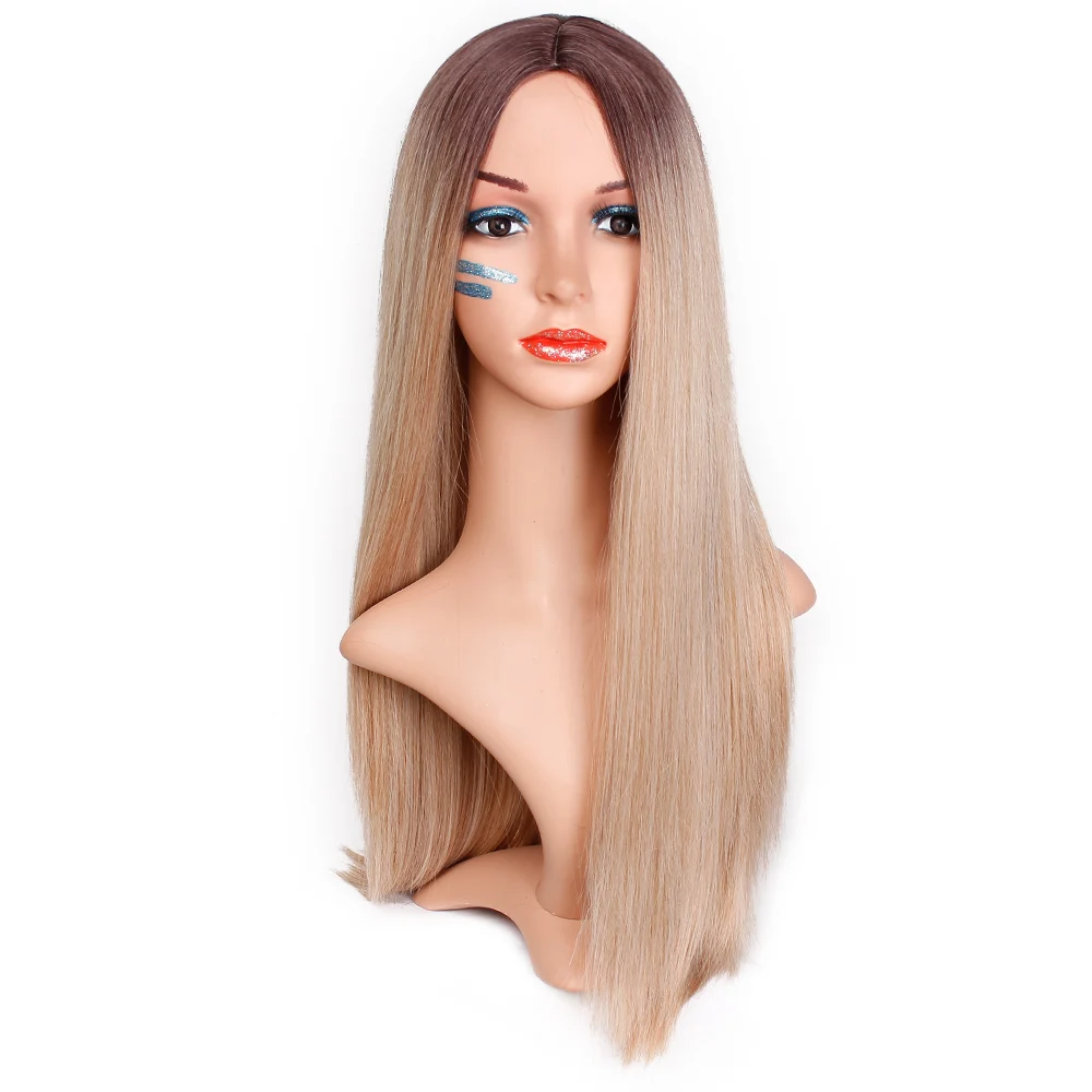 Stamped Glorious 26inches Straight Synthetic Long Wig Ombre Blonde Wig for Women Middle Part Nature