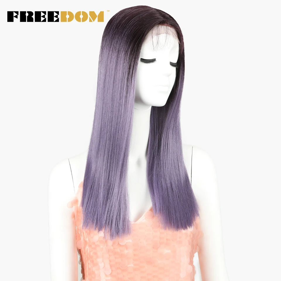 FREEDOM Wigs For Black Women Heat Resistant Straight Purple Blonde Blue Synthetic Lace Front Wigs N