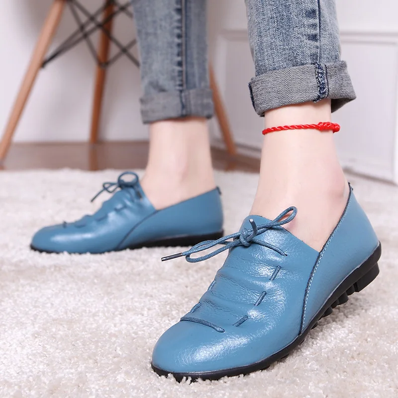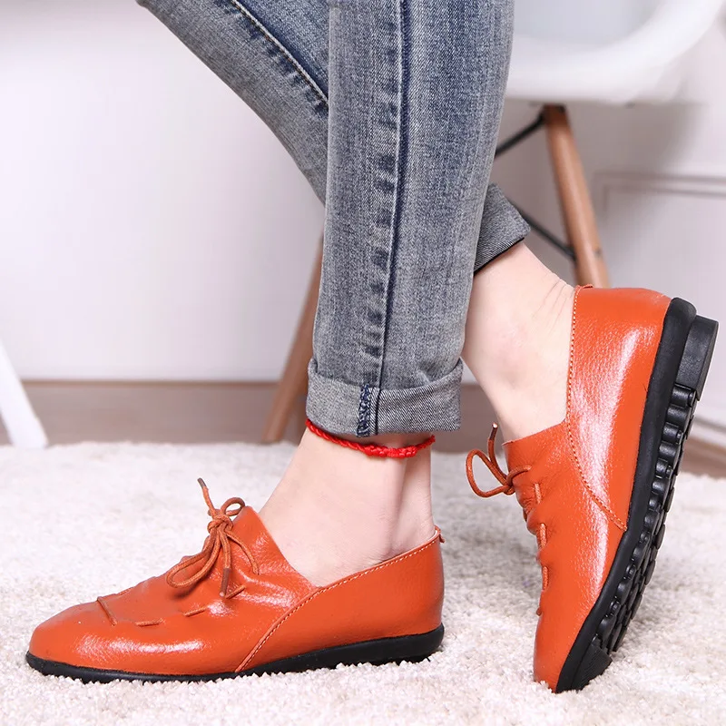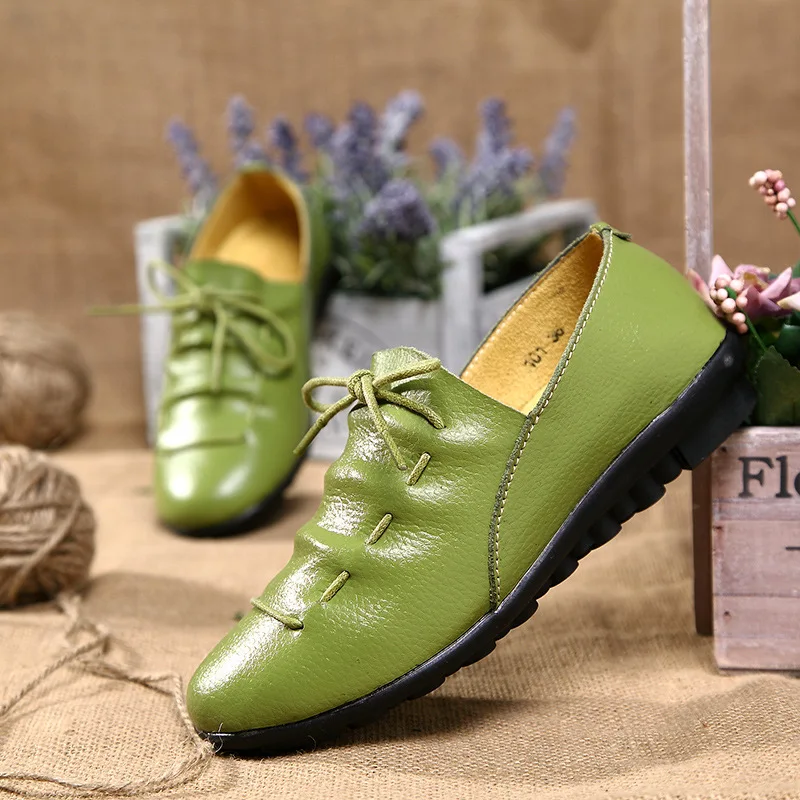 Women shoes 2019 new arrival spring lace-up pleated genuine leather flats shoes woman rubber party