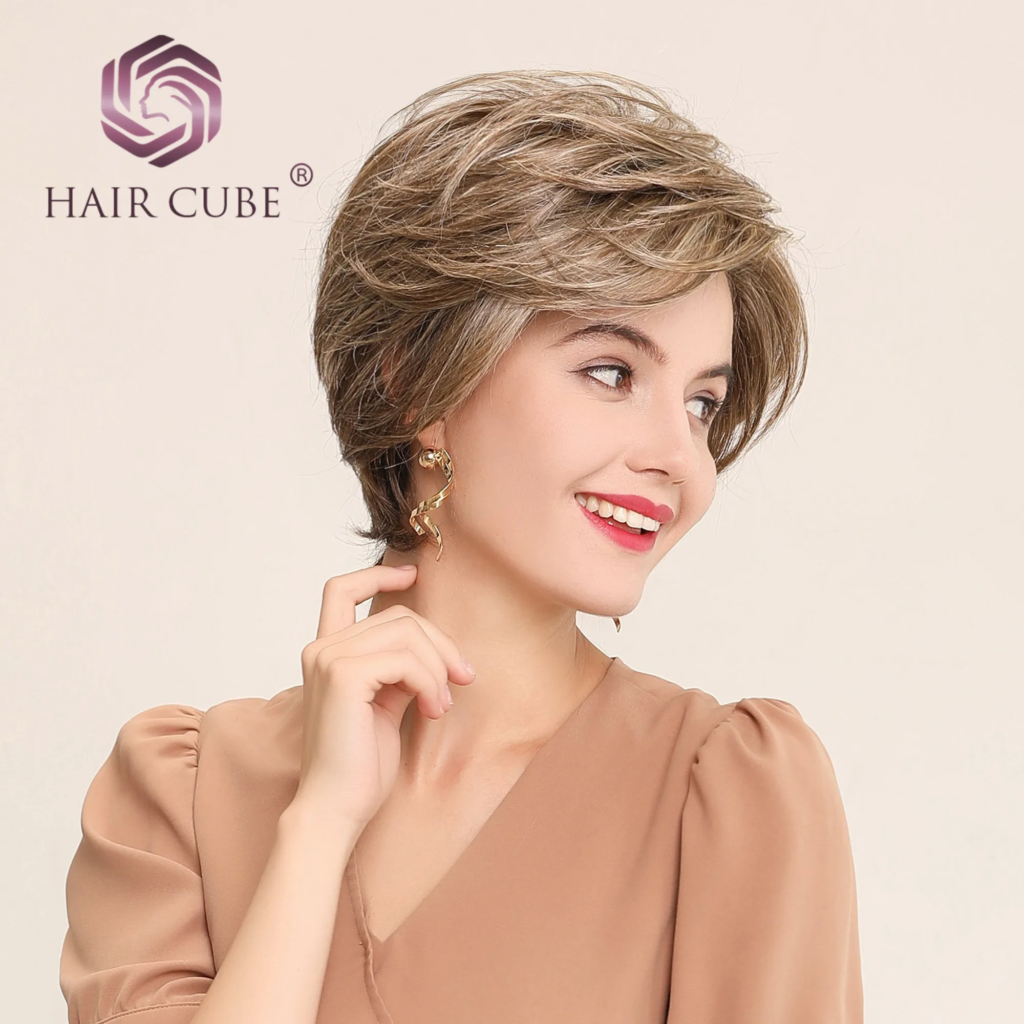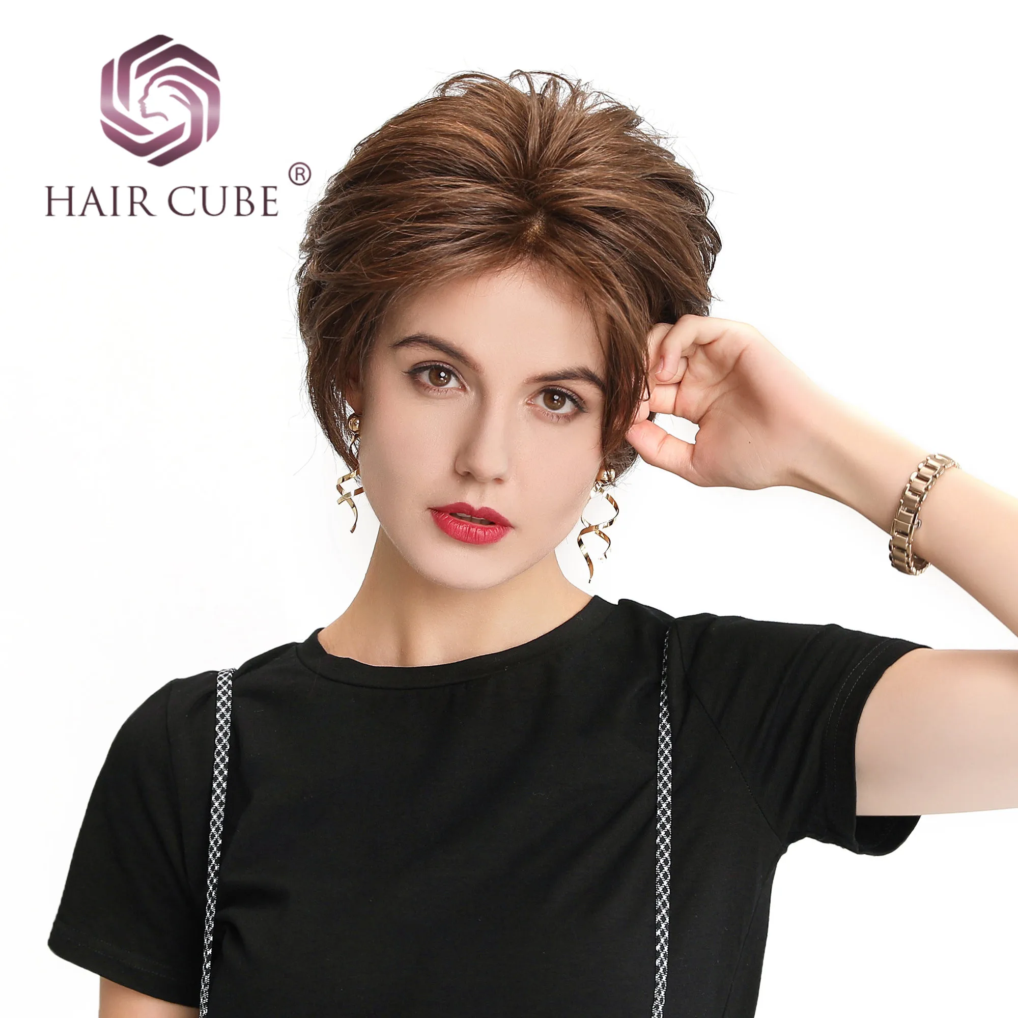 Hot Sale Haircube Synthetic Lace Front Wigs 6 Inch 50% Human Hair Blend Pixie Cut Short Hair Wig with Natura